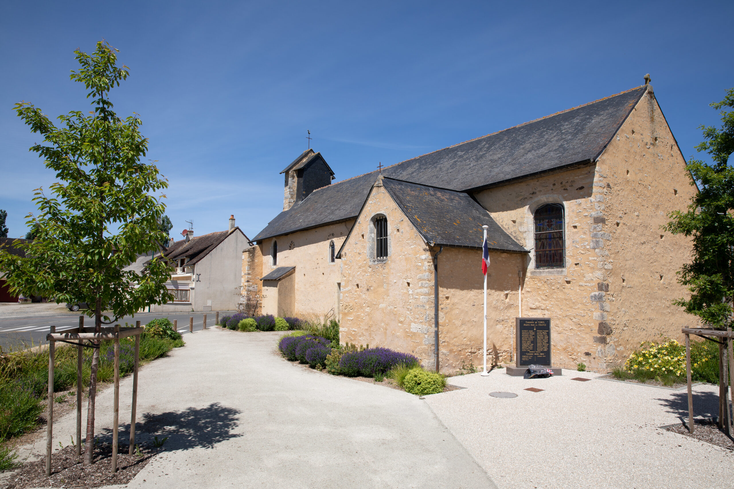 Éléments d’intérêts patrimoniaux : église, Croix et calvaires, parc avec verger en centre-bourg, grange ouverte réhabilitée, murs traditionnels